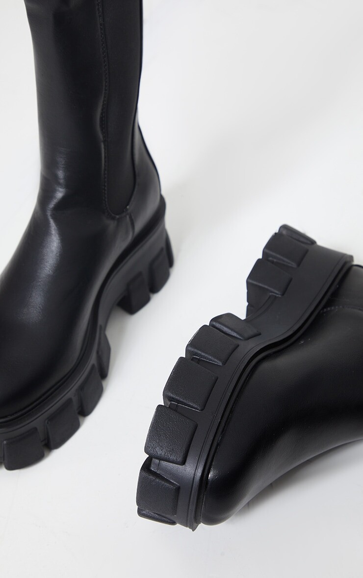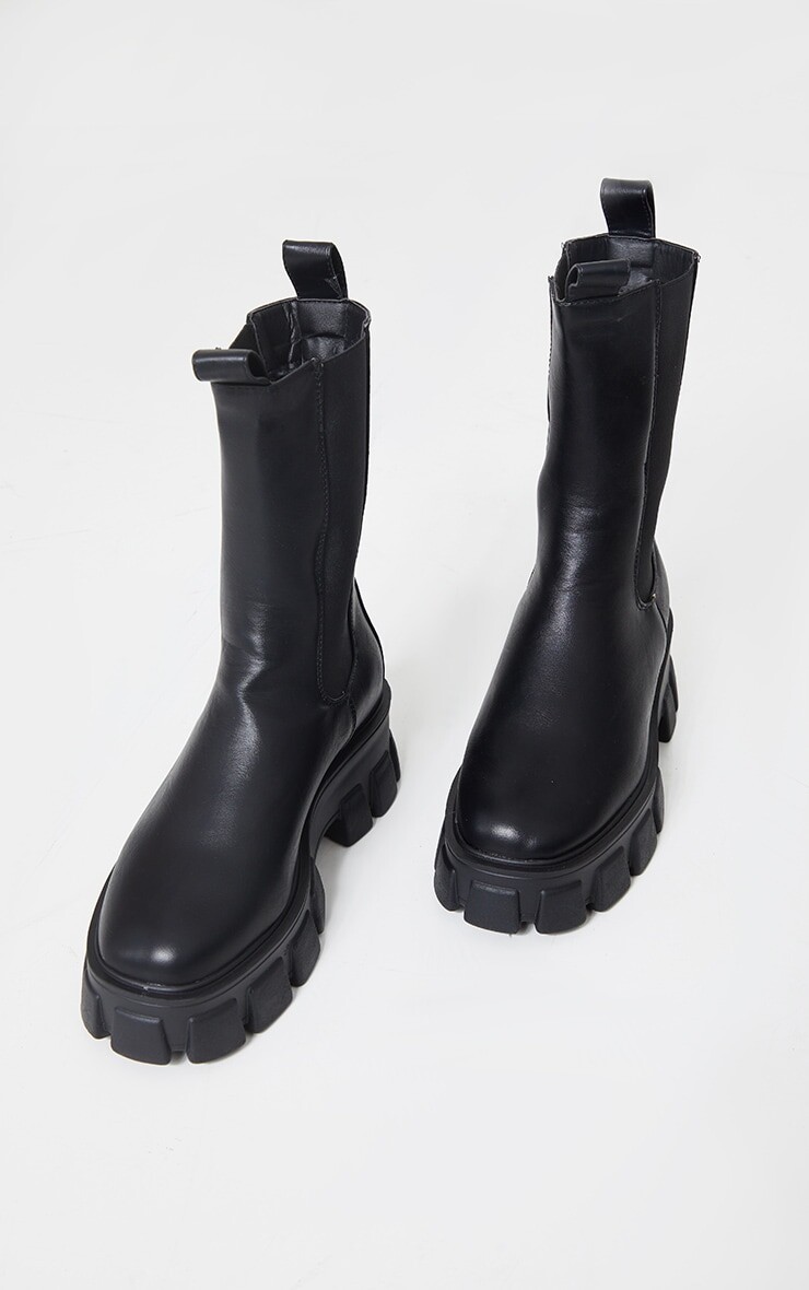 PrettyLittleThing Черные высокие ботинки челси на массивной подошве