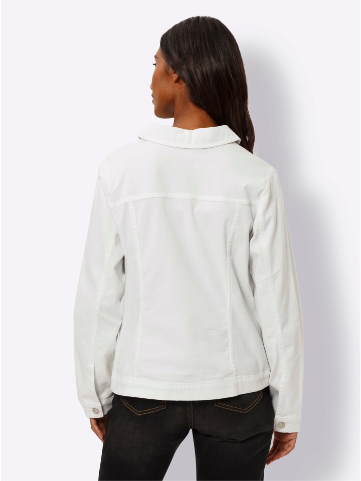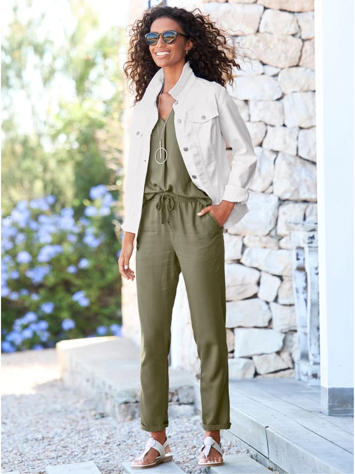 Пиджак с рубашечным воротником, планкой на пуговицах, декоративными нагрудными карманами и боковыми карманами. Длинные рукава с манжетами. Соответствует инициативе Хлопок, сделанный в Африке.