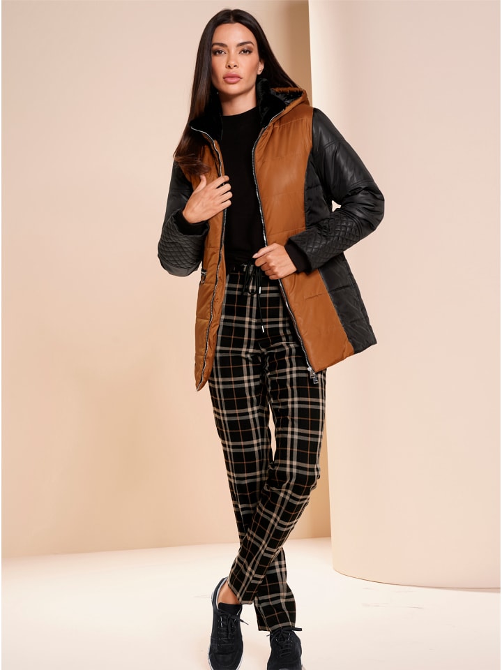 Повседневные и удобные брюки благодаря эластичному материалу. Модный клетчатый рисунок и пояс с резинкой по всему периметру, затягивающийся шнурком и завязкой. С боковыми разрезами. Практичные карманы на молнии. Стандартная посадка. Комфортная посадка. Ширина до щиколотки: около 34 см.