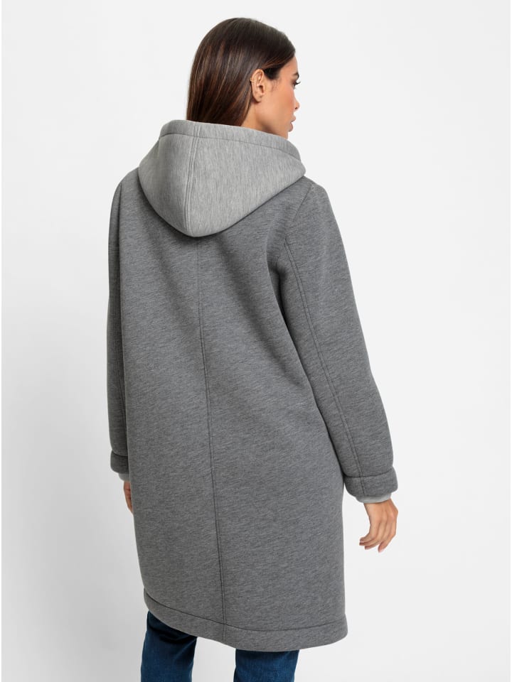 Пальто в эффектном стиле 2 в 1 со съемной вставкой-толстовкой с капюшоном. Из окрашенной в пряжу ткани, сохраняющей форму. С визуально удлиняющим воротником с лацканами, планкой на пуговицах и молнией. 2 боковых кармана. Длинные рукава.
