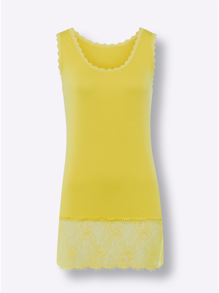 Верх рубашки из мягкой, эластичной ткани с нежной кружевной отделкой. Круглый вырез горловины и широкие бретели.