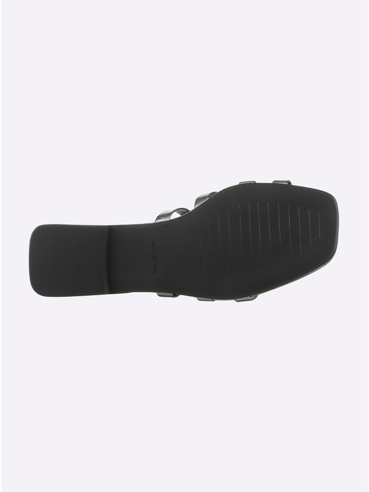 Мюли, произведенные в Испании. Изготовлены из высококачественной овечьей кожи наппа. С женскими ремешками. Кожаная стелька. Каблук блочный, высота примерно 5 мм.