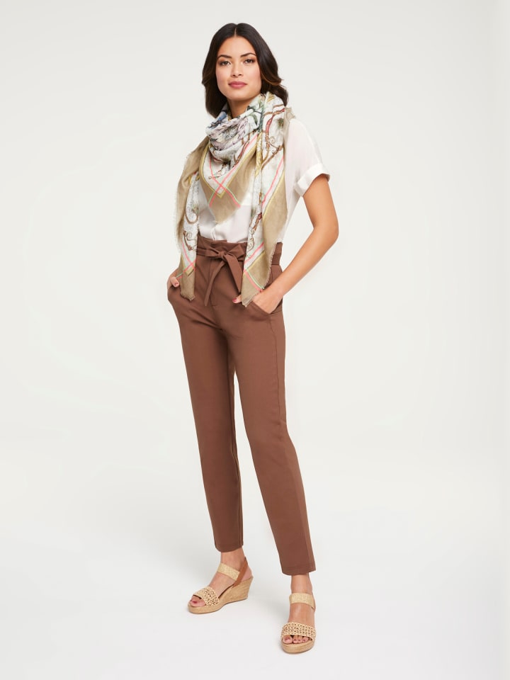 Брюки современного фасона морковка с боковыми карманами. Комфортная, струящаяся ткань. Ширина до щиколотки около 35 см. Завышенная талия. Классический крой.