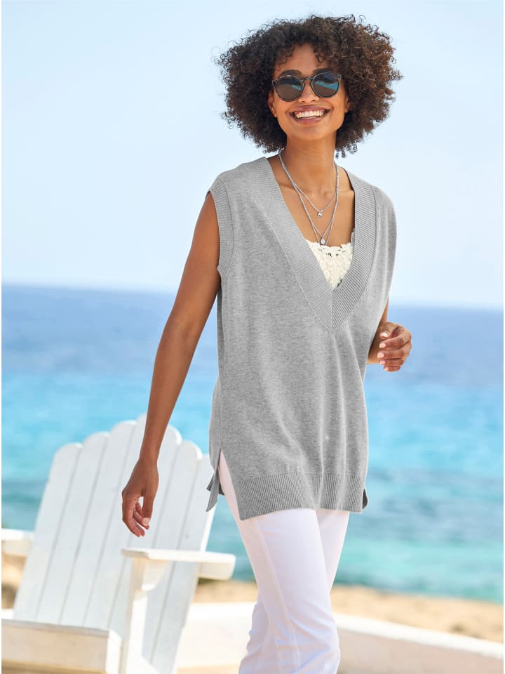 Мягкий тонкий трикотажный свитер из чистого хлопка. С большим V-образным вырезом, разрезами по бокам и ребристыми манжетами. Поддерживает инициативу Хлопок, сделанный в Африке.