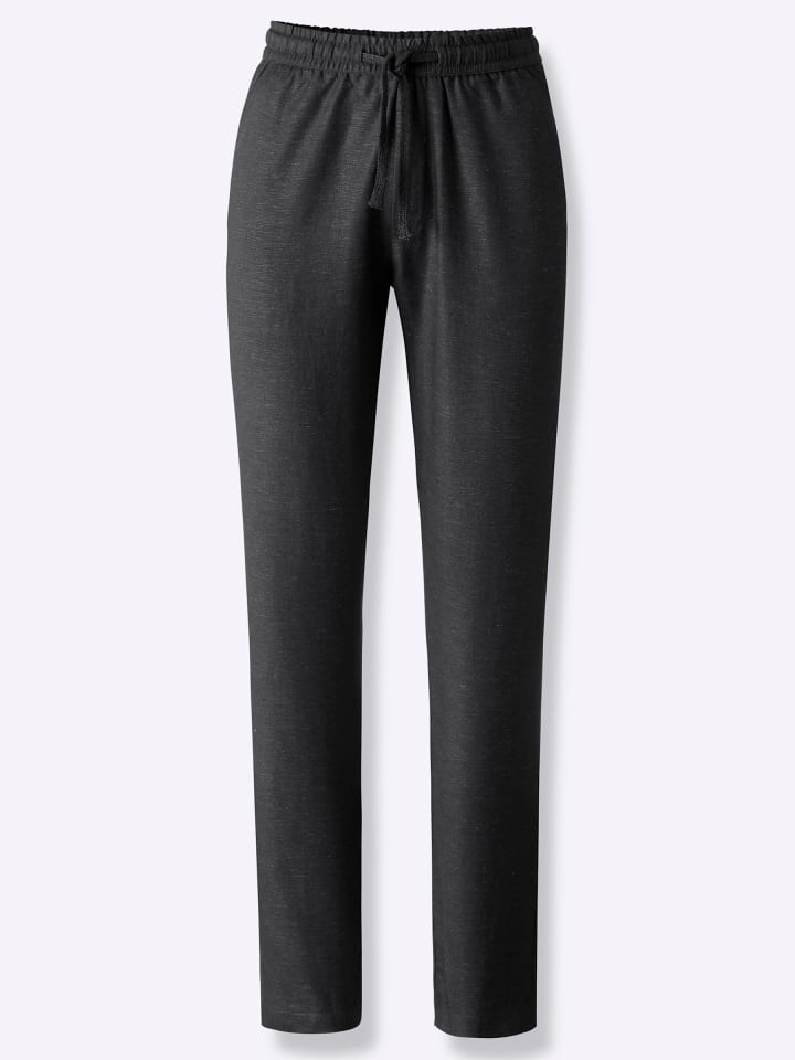 Брюки с боковым швом, вывернутым вперед. Пояс на резинке по всему периметру со шнурком и завязкой, карманы. Стандартная посадка. Комфортная посадка. Ширина щиколотки примерно 33 см.