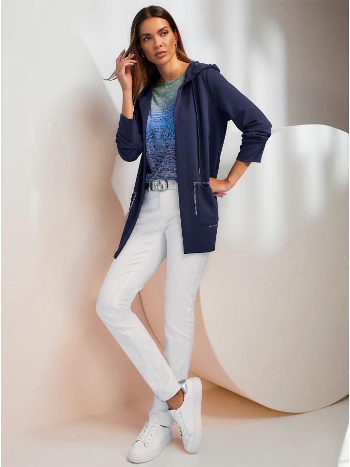 Куртка-рубашка. Высокое качество, с легким блеском. Модный, открытый крой. Капюшон на шнурке и завязке, карманы со стразами. Длинные рукава.