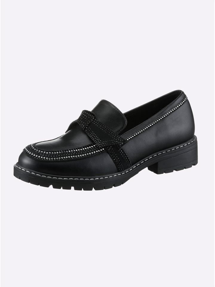 Туфли из высококачественного синтетического материала. С отделкой стразами и декоративным бантом, украшенным черными стразами. Текстильная подкладка, кожаная стелька. Каблук блочный, высота около 35 мм.