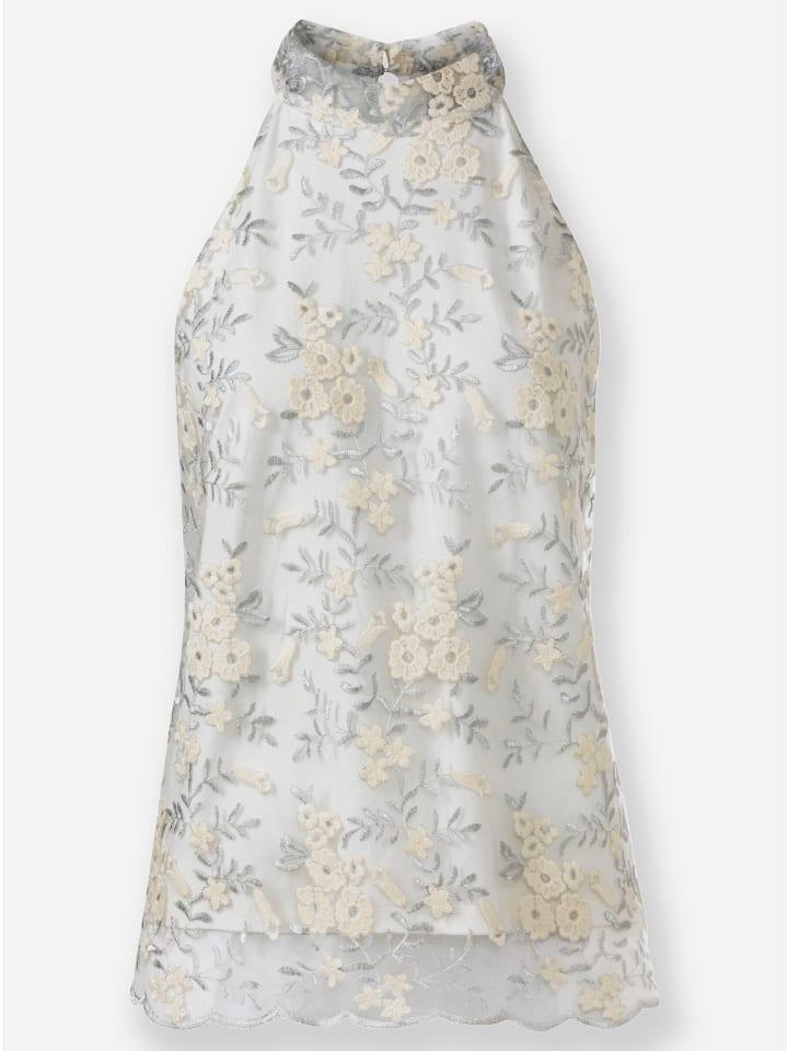 Верх рубашки очаровывает своей нежной прозрачностью, вышивкой по тюлю и блестящими эффектами. Разрез и застежка на пуговицы на горловине. Фестончатый подол. Плотная подкладка.