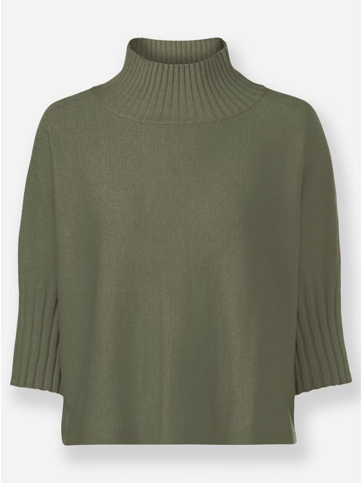 Свитер: Повседневный, удивительно мягкий, тонкой вязки, модного короткого кроя. С теплым воротником-стойкой и ребристыми манжетами на рукавах летучая мышь длиной 3/4.