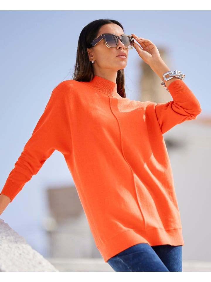 Свитер модного свободного кроя с воротником-стойкой, длинными рукавами летучая мышь и привлекательным центральным швом спереди. Ребристые манжеты. В поддержку инициативы Сделано в Африке (Cat. Made in Africa).