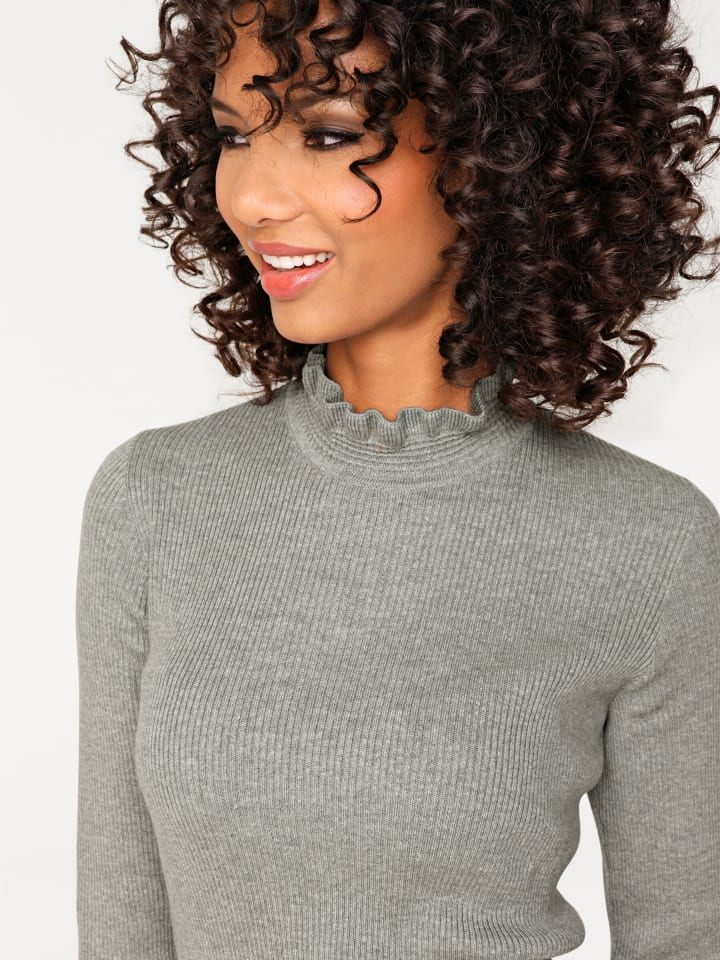 Свитер с воротником-стойкой в модном стиле. Приятный материал. Очень облегающий фасон.