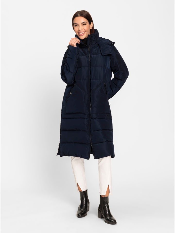 Чудесное теплое пальто с модной стежкой. Съемный капюшон на шнурке, мягкий воротник-стойка, практичная двусторонняя молния и боковые молнии. 2 кармана на молнии и 2 накладных кармана на кнопках. Внутренний карман на пуговице. Изготовлено из переработанного полиэстера.