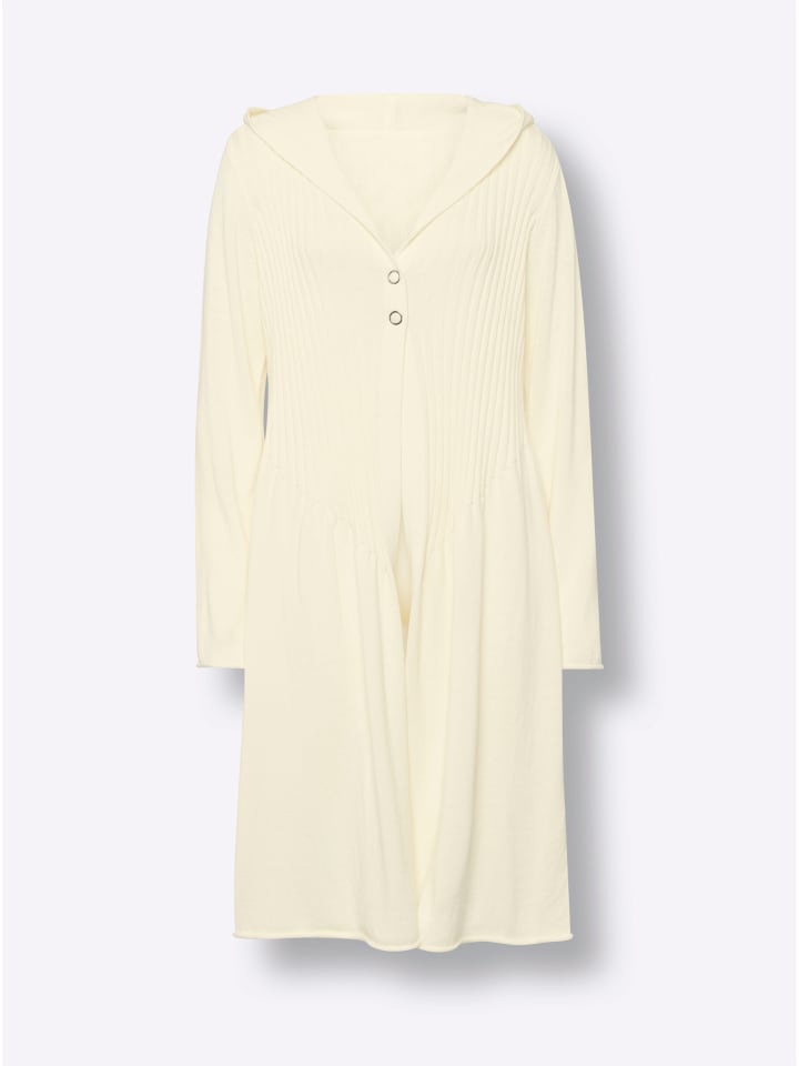 Супермягкое трикотажное пальто из модной смеси трикотажа, частично ребристая, частично гладкая ткань. С капюшоном и застежкой на кнопки. Длинные рукава и подвернутые манжеты. В поддержку инициативы Сделано в Африке из хлопка.
