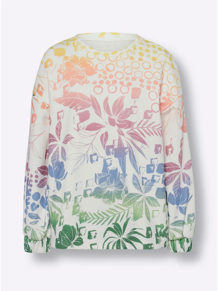 Толстовка из легкой, комфортной ткани с модным градиентом цвета и цветочным принтом по всей поверхности. Круглый вырез горловины и спущенная линия плеча. Длинные рукава-фонарики с эластичным поясом. В поддержку инициативы Сделано в Африке (Cat Made in Africa).