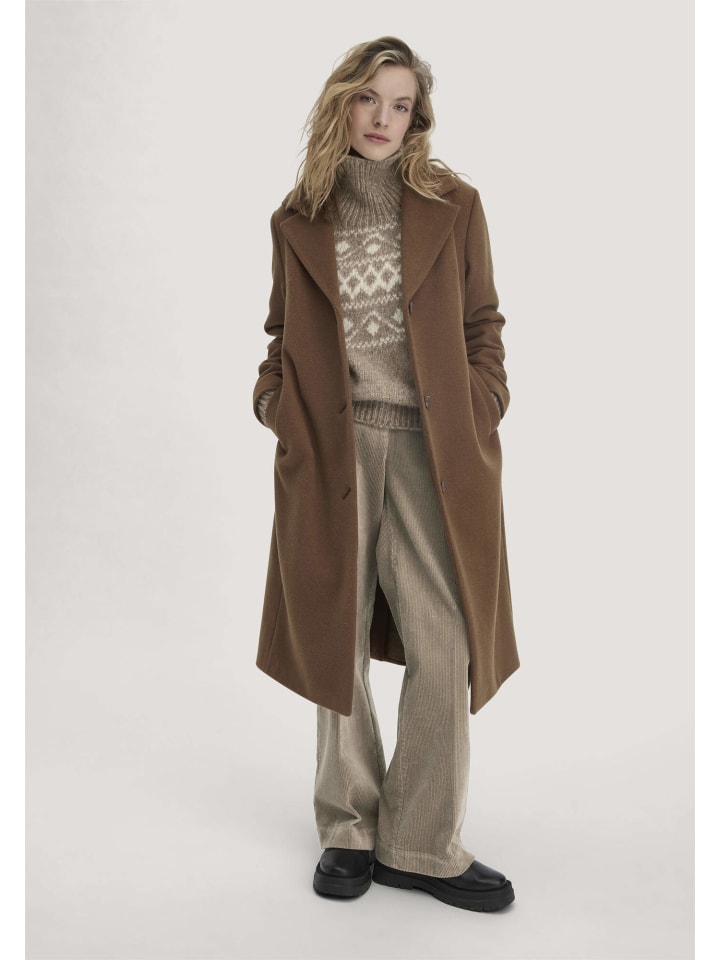 - Классический крой из натуральной шерсти для многослойных образов с четким кроем.