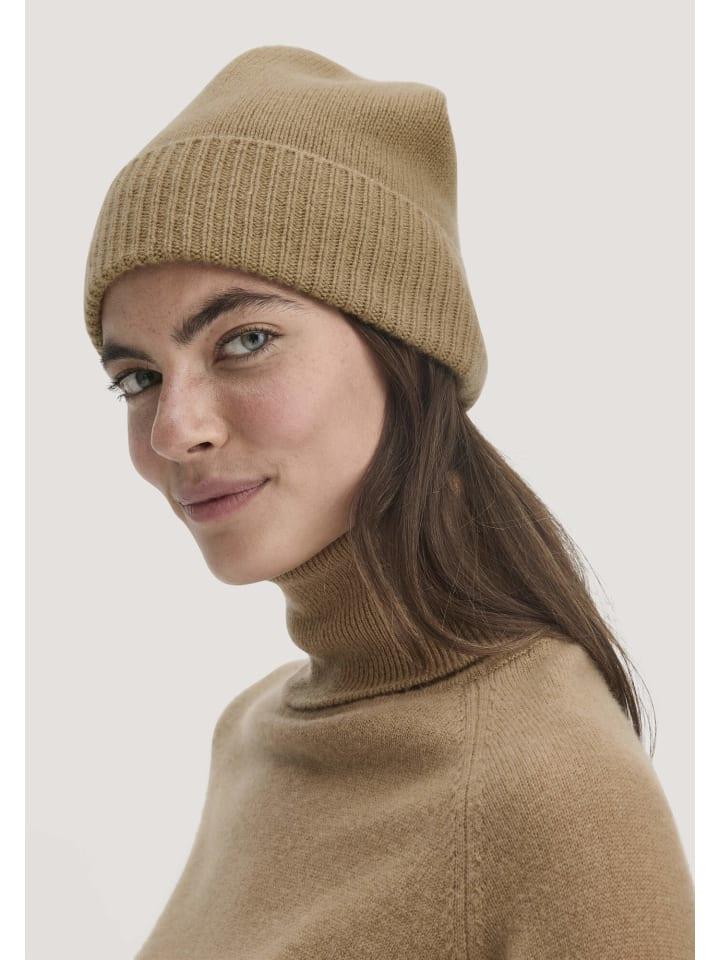 Мягкий. Элегантный. Уютный. Вязаная шапка с 40% переработанных кашемировых волокон собственного производства: для экологичного комфорта.