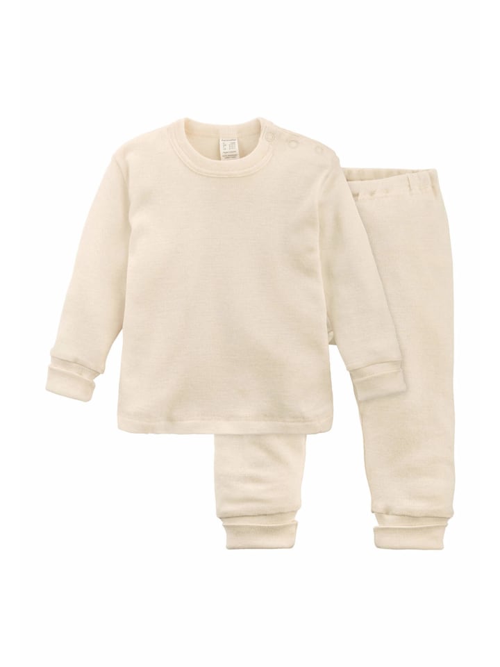 - С длинными рукавами, круглой горловиной, застежками-кнопками (до размер 74/80), удлиненные брюки, сменная резинка, отворот на поясе до размера 62/68