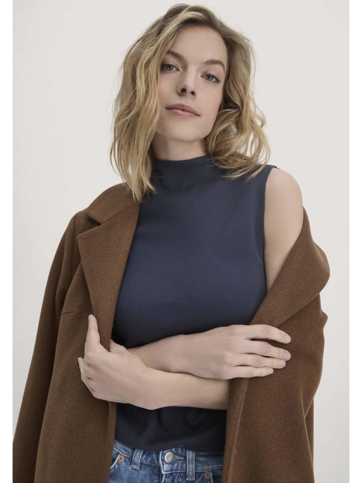 Чистый. Острый. Идеальный топ. Если топ источает сдержанность, то этот именно такой. Только комфорт и четкие линии: водолазка добавляет структуру, тонкий рубчик 2x2 облегает, не создавая эффекта навязчивости - идеально подходит как для самостоятельного образа, так и в качестве основы для всего остального.
