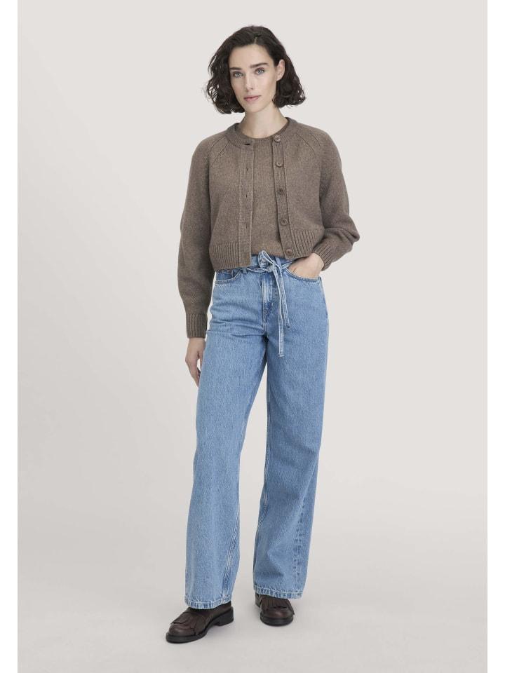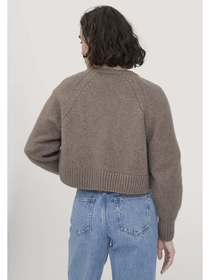 Наши модели? Разнообразны, как сама природа. Этот укороченный кардиган из мягкой смеси органической мериносовой шерсти особенно хорошо сочетается с брюками с высокой талией и воплощает в себе дух экологичности - одним словом.