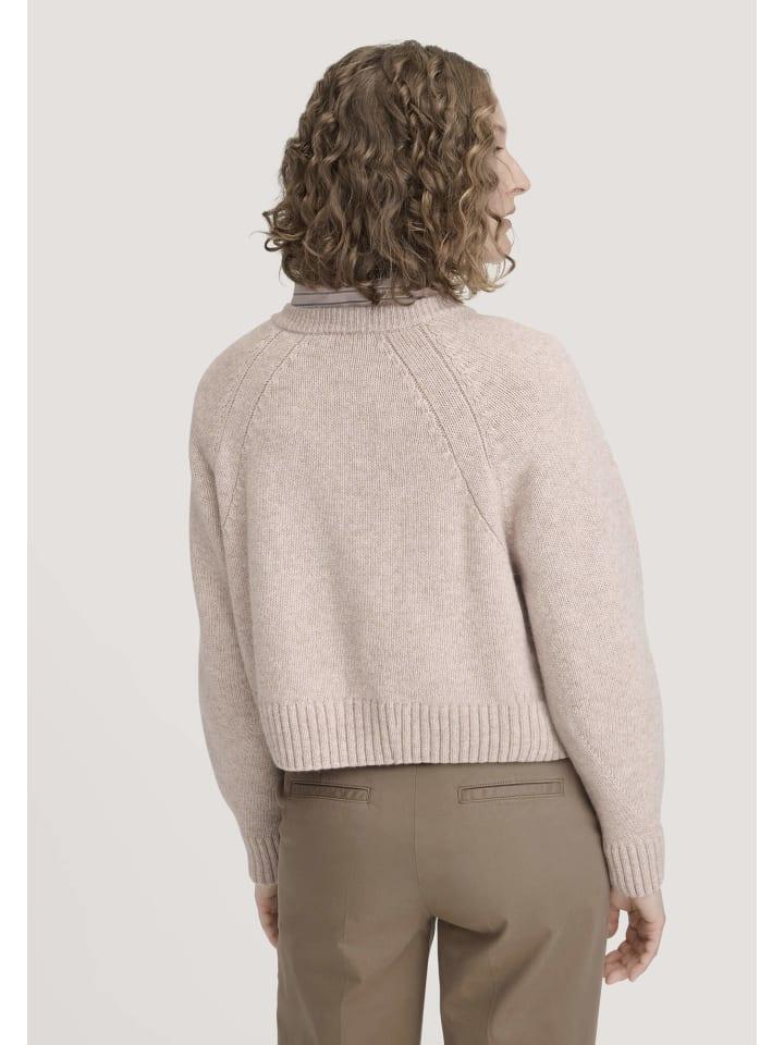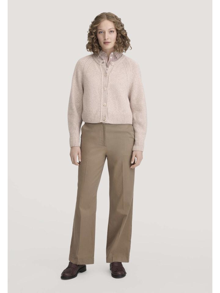 Наши модели? Разнообразны, как сама природа. Этот укороченный кардиган из мягкой смеси органической мериносовой шерсти особенно хорошо сочетается с брюками с высокой талией и воплощает в себе дух экологичности - одним словом.