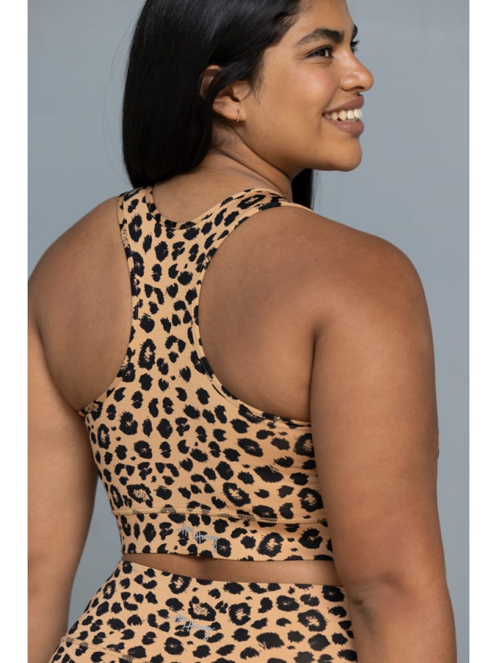 Этот спортивный бюстгальтер с леопардовым принтом сочетает в себе яркий стиль и функциональную поддержку. Динамичный дизайн делает его заметным, а мягкая эластичная ткань обеспечивает комфорт в течение всего дня. Влагоотводящая смесь полиамида и эластана сохраняет прохладу и сухость. Крой спины-борцовка обеспечивает неограниченную свободу движений - идеально подходит для занятий спортом и повседневной носки.