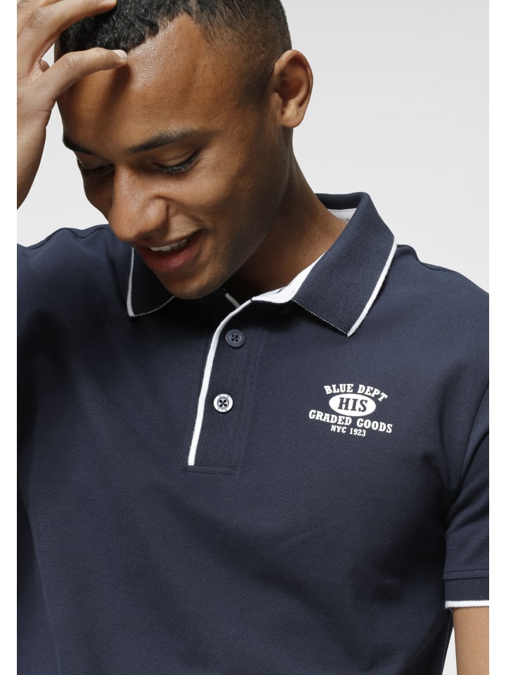 Классическая мужская рубашка-поло от HIS облегающего кроя. Застежка на пуговицы. Стильный принт. Верхняя часть выполнена из комфортной ткани пике.