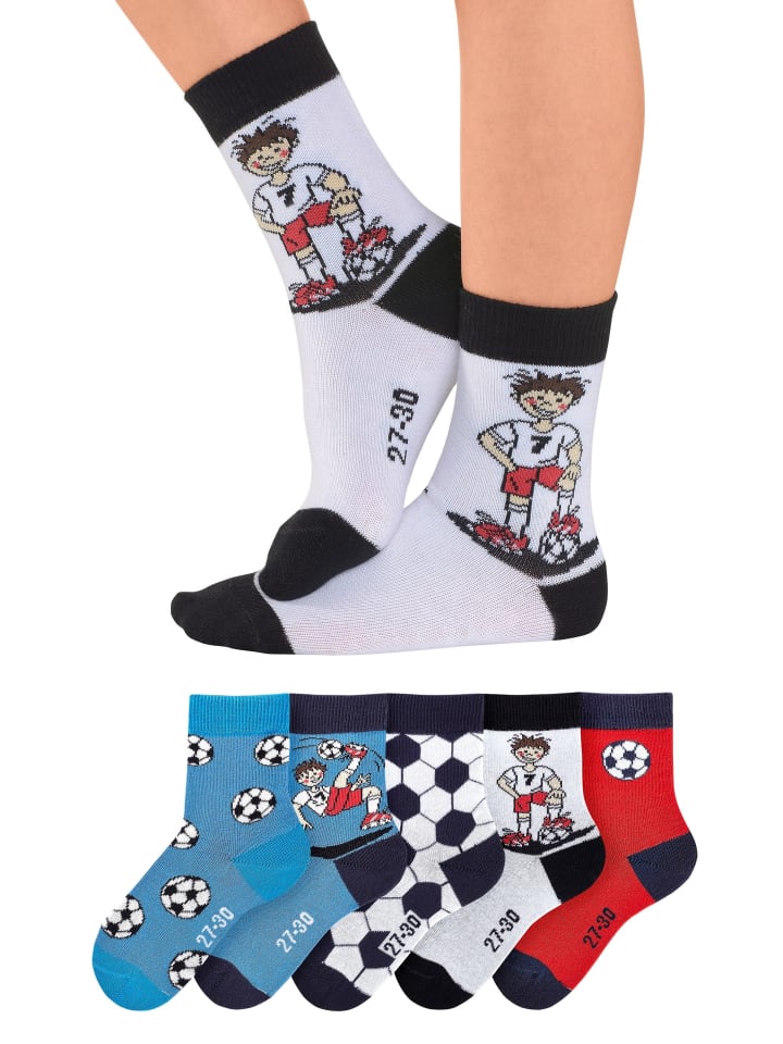 Заказывайте сейчас для маленьких футбольных фанатов и комбинируйте по своему вкусу. Детские носки для футбольных фанатов с красивыми футбольными мотивами в разнообразных цветах. С этими высококачественными фирменными носками от HIS каждый день будет удовольствием для детей и взрослых. Мягкий, дышащий и приятный для кожи материал с высоким содержанием хлопка обеспечивает приятный микроклимат ног. Благодаря специальной манжете, точки давления не возникают даже после нескольких часов ношения. Усиленные зоны стресса на носке и пятке обеспечивают оптимальную прочность. Детские носки HIS в практичной упаковке из 5 штук. Мотивы остаются нетронутыми даже после нескольких стирок. Приятное качество хлопка для приятного комфорта при ношении, изготовлено из 75% хлопка, 23% полиамида, 2% эластана. 5 различных мотивов дизайна. Прочность даже после нескольких стирок. С вязаным размером под подошвой. Высокое содержание хлопка.