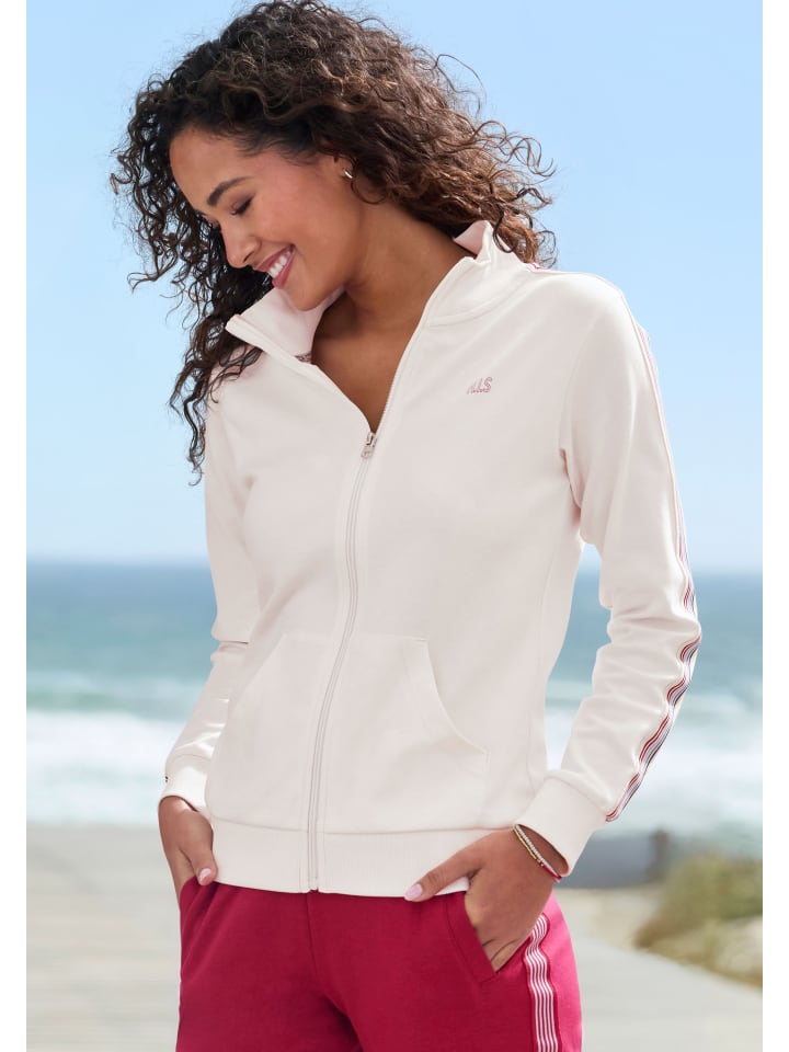 Удобная толстовка от HIS со спортивным воротником-стойкой и полосатой тесьмой на рукавах. Широкие, мягкие ребристые манжеты. Идеально подходит для дома. Мягкая, эластичная ткань интерлок из смеси хлопка.