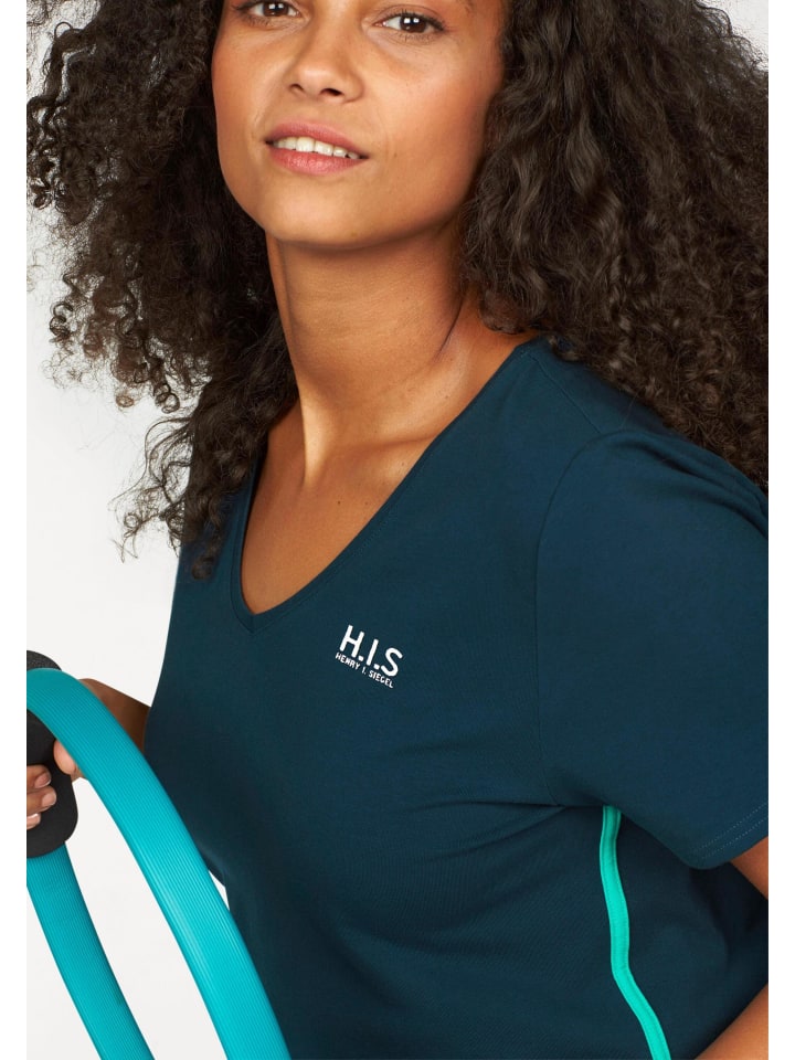 Универсальная женская футболка HIS с облегающим кроем, закрывающим бедра. Украшена модным принтом с логотипом. Верх выполнен из приятного для кожи и эластичного хлопкового смесового материала для комфортной посадки.