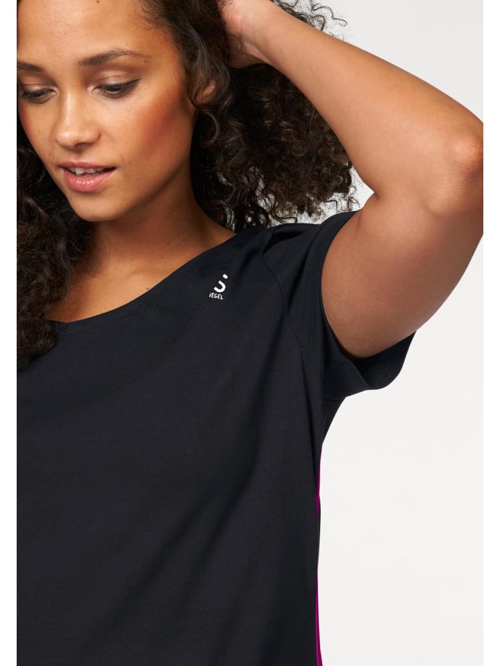 Универсальная женская футболка HIS с облегающим кроем, закрывающим бедра. Украшена модным принтом с логотипом. Верх выполнен из приятного для кожи и эластичного хлопкового смесового материала для комфортной посадки.