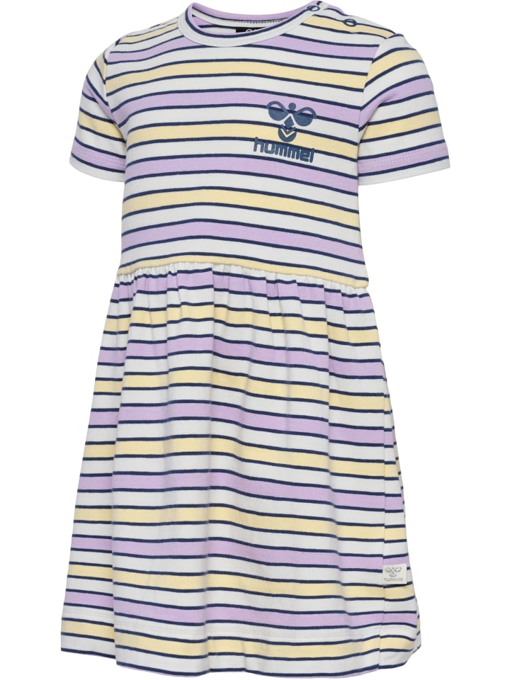 Ищете ли вы наряд для детской вечеринки или что-то милое для вечеринки, у hummel есть то, что вам нужно - платье hmlHAPPY ME DRESS S/S. Это платье с короткими рукавами сшито из хлопкового трикотажа, дышащего, прочного и комфортного. Оно не только практично: полоски, окрашенные пряжей, и напечатанный логотип добавляют особый шарм, делая это платье идеальным для любого случая.