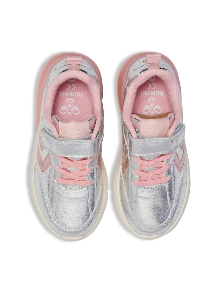 Кроссовки DAYLIGHT GLITTER JR с блестящей отделкой и подошвой из ЭВА с мигающими светодиодами в стиле Hummel - одновременно веселые и удобные. Регулируемая застежка-липучка и язычок на пятке позволяют малышам легко надевать их.