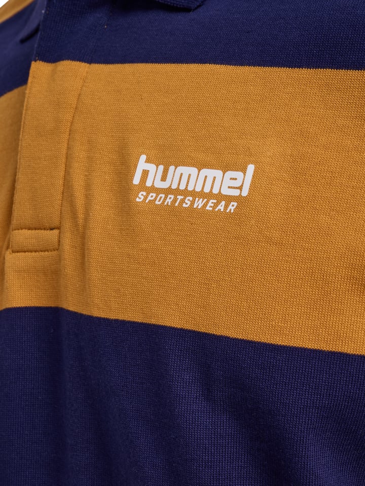 Полосатое поло hmlLOOSE размера L/S - стильное поло с длинными рукавами, изготовленное из 100% органического хлопка. Оно отличается классическим полосатым дизайном, свободным кроем и логотипом Hummel на водной основе на груди. Идеально подходит для создания повседневного спортивного образа.