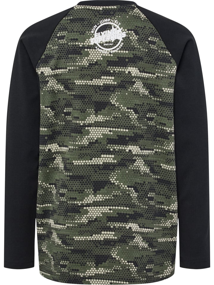 Футболка hmlFSK FLY L/S изготовлена из трикотажной ткани, обеспечивающей детям комфорт во время любых занятий. Длинные рукава реглан с контрастным принтом обеспечивают защиту и тепло. Надпись RUN/JUMP/FLY, знакомая и любимая детьми по сериалу, гордо красуется спереди под классическими шевронами Hummel, а логотип Flying Superkids - на спине.