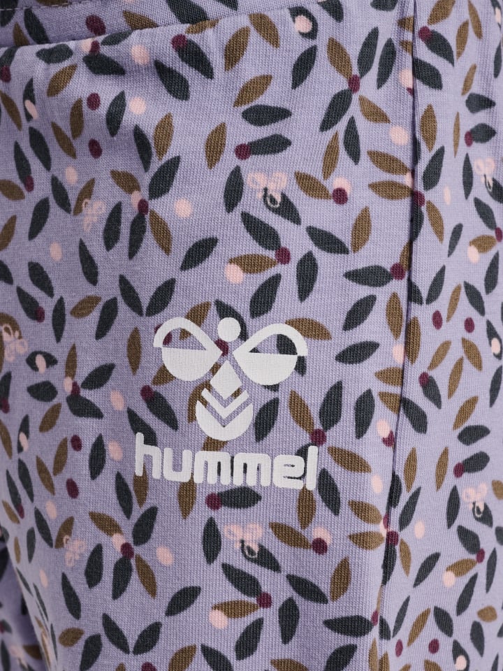 Трикотажная ткань брюк hmlELVINA AOP PANTS изготовлена из органического хлопка, обеспечивающего мягкость и легкую вкрапление эластана для дополнительной эластичности. Регулируемый пояс на шнурке обеспечивает надежную посадку, пока малыш резвится. Напечатанный логотип на штанине и стильный узор из листьев по всей поверхности дополняют дизайн.