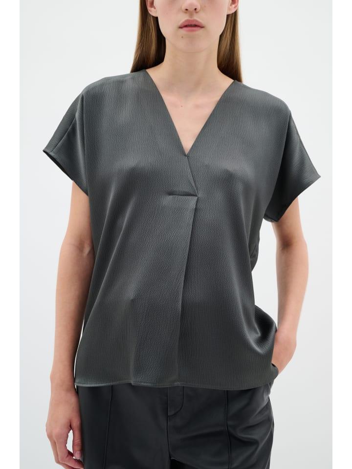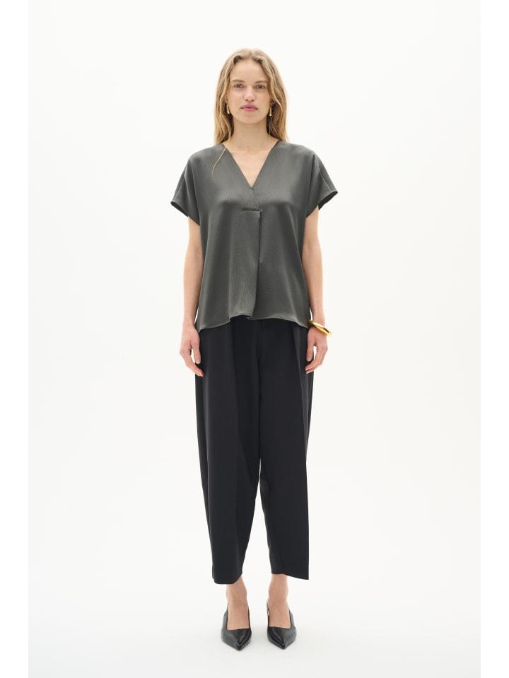 Блузка с короткими рукавами, мягкой текстурированной поверхностью, свободным кроем и современным V-образным вырезом в сочетании со стильным накладным передом.