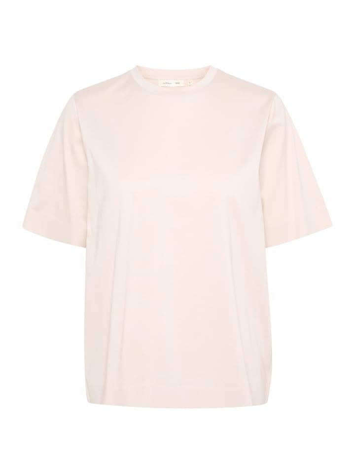 Футболка прямого, слегка свободного кроя, с круглым вырезом и рукавами до середины голени. Гладкая отделка создает утонченный, вневременный образ.
