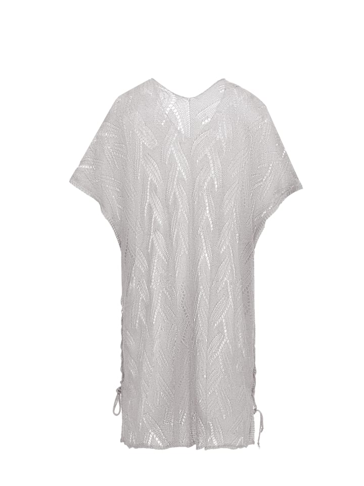 Это изысканное изделие сочетает в себе элегантность и комфорт. Туника/топ с V-образным вырезом украшена сложным кружевным узором с различными узорами, создающими нежную, ажурную текстуру. Платье прямого кроя с отделкой по подолу, рукавам и вырезу имеет свободную посадку. Легкий материал создает ощущение мягкости и воздушности, обеспечивая непринужденную носку.