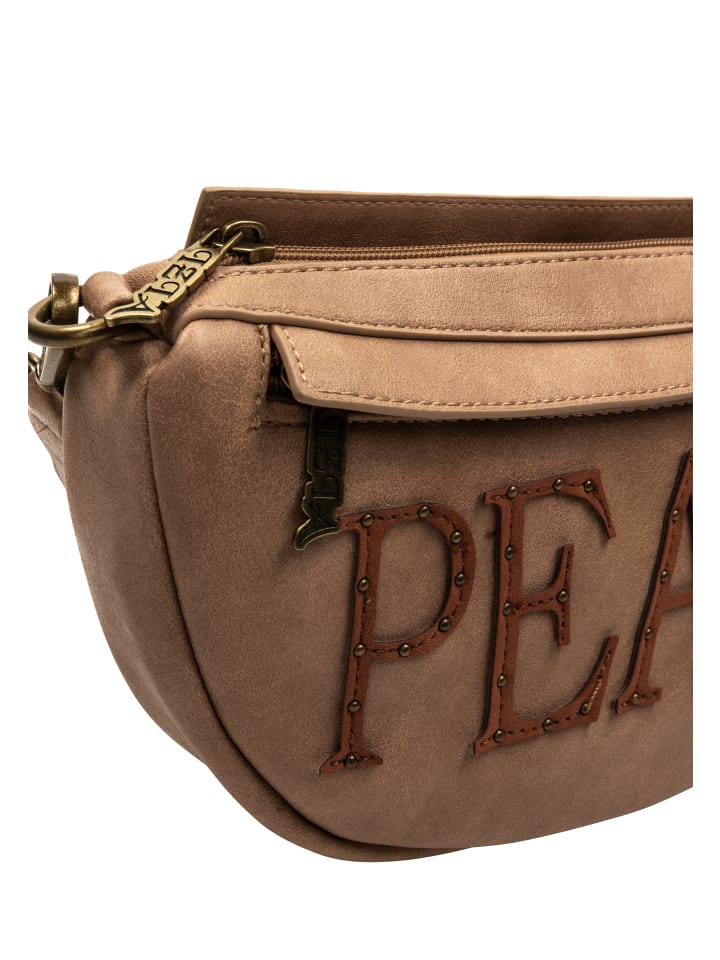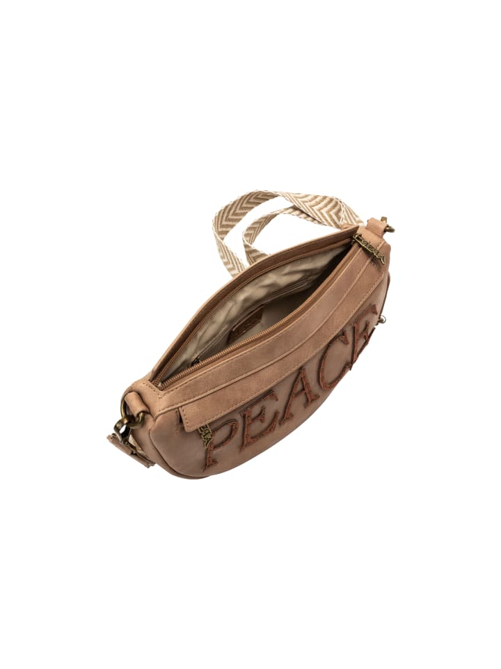 Подчеркните свой стиль с этой полукруглой сумкой через плечо, идеально подходящей для фестивальной атмосферы. Она оснащена регулируемым и съемным ремешком для универсальности. В дизайне предусмотрены внутренний и внешний карманы на молнии для самых необходимых вещей. Украшенная заклепками и изготовленная из экокожи, эта модель в этно-стиле идеально подойдет для юных модниц.