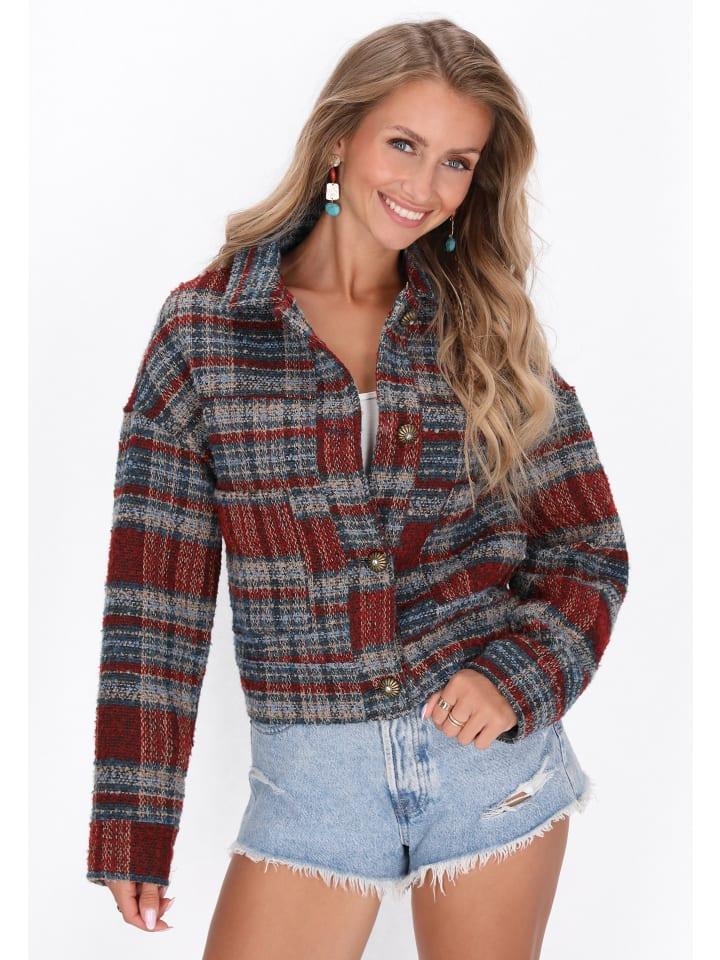 Ощутите непринужденную элегантность этой куртки свободного кроя из нашей коллекции Fashion Look. Куртка выполнена из уютной ткани букле с классическим клетчатым узором. Она отличается классическим воротником, длинными рукавами и спущенным плечом, что создает непринужденный и непринужденный образ. Застежка на пуговицы спереди и практичные карманы добавляют стиль и функциональность, делая ее идеальным многослойным предметом гардероба для повседневного комфорта с модной ноткой.