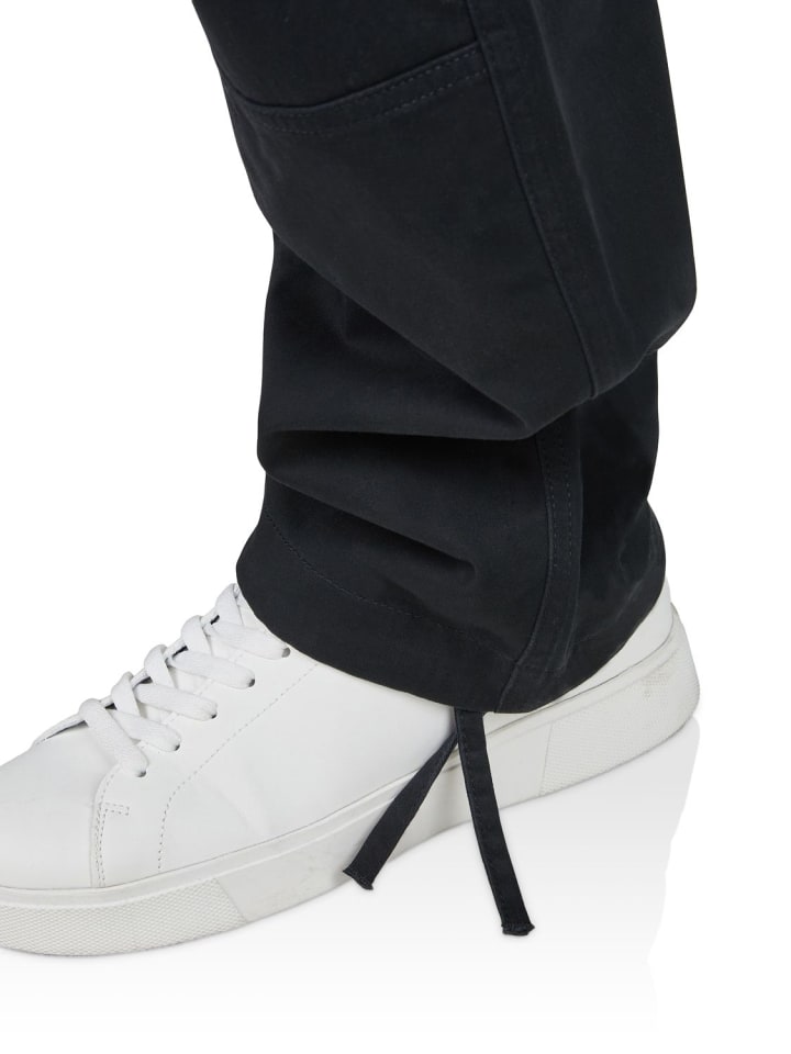 Помимо двух боковых карманов, брюки-карго также имеют два врезных кармана на штанинах, которые можно закрыть клапаном. Два задних кармана также можно закрыть клапаном. Эти мужские брюки-карго Jack & Jones особенно просторные, в них много места, включая ключи, кошелек и, конечно же, ваш смартфон тоже найдет место в одном из карманов брюк. Еще одна изюминка - манжеты на штанинах, регулируемые шнурком.