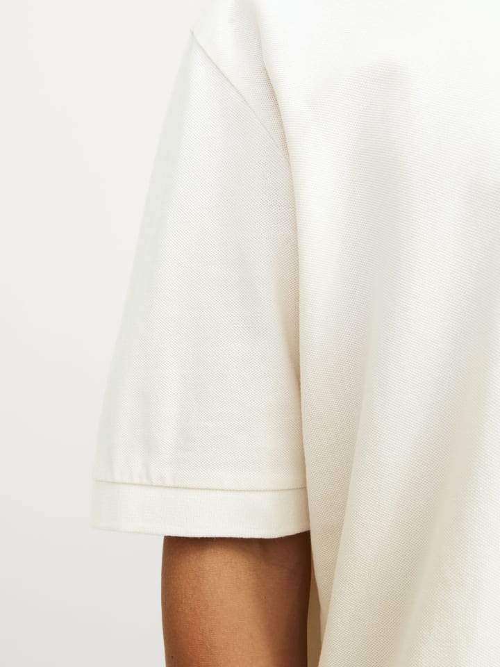 Ткань пике известна своим тонким геометрическим рисунком и воздушной текстурой, что создает вневременной образ и ощущение легкости.