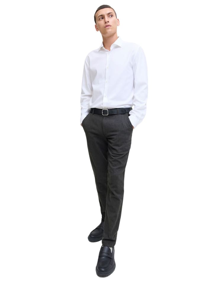 Мужские брюки-чинос Jack & Jones \"JPSTMARCO BOWIE WINTER CHINO\" из зауженной ткани, разных цветов, однотонные. Узкие брюки-чинос Jack & Jones \"JPSTMARCO BOWIE WINTER CHINO\" из ткани с застежкой-молнией - это брюки, которые можно сочетать с самыми разными предметами одежды. Любой, кто сталкивается с множеством задач в течение дня, не хочет беспокоиться о своем наряде. Мужчины ожидают, что их одежда будет сидеть идеально и выглядеть модно. Эти брюки-чинос именно это и предлагают! Низкая посадка оптимально подчеркивает длинные ноги и узкие бедра. Это делает их особенно привлекательным выбором для высоких и стройных людей.