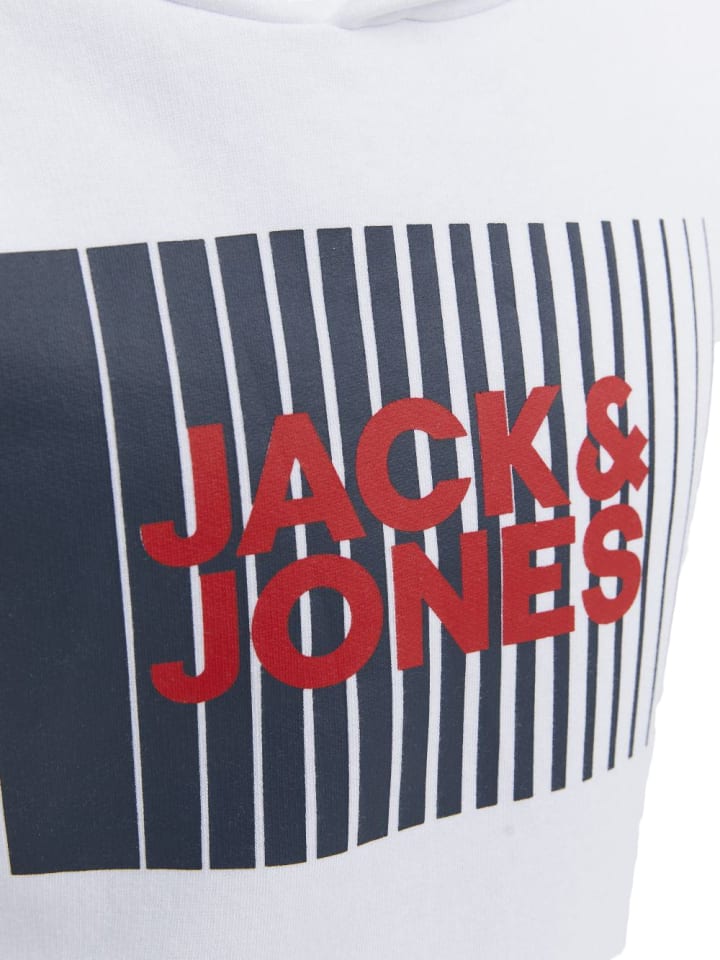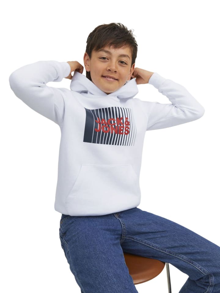 Толстовка с принтом для мальчиков Jack & Jones "JJECORP LOGO SWEAT HOOD PLAY JNR", доступная в нескольких цветах.