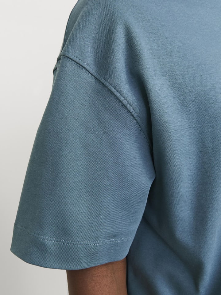Эта базовая футболка - незаменимый аксессуар, отлично сочетающийся с джинсами, шортами и брюками. Трикотажное полотно с гребнем эластичное, мягкое на ощупь и идеально подходит для повседневной носки. - Тип изделия: футболка - Вырез горловины: круглый - Рукава: короткие - Покрой: свободный - Футболка - Широкий крой - Короткие рукава - Состав: 50% хлопок - 50% органический хлопок