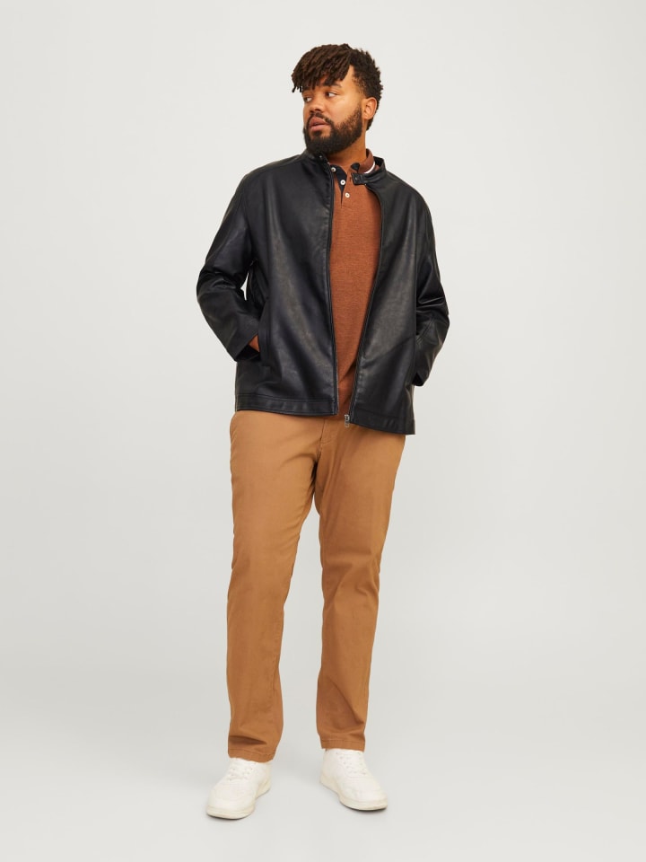 Кожаная куртка JACK & JONES PLUS, черный 11 067₽
