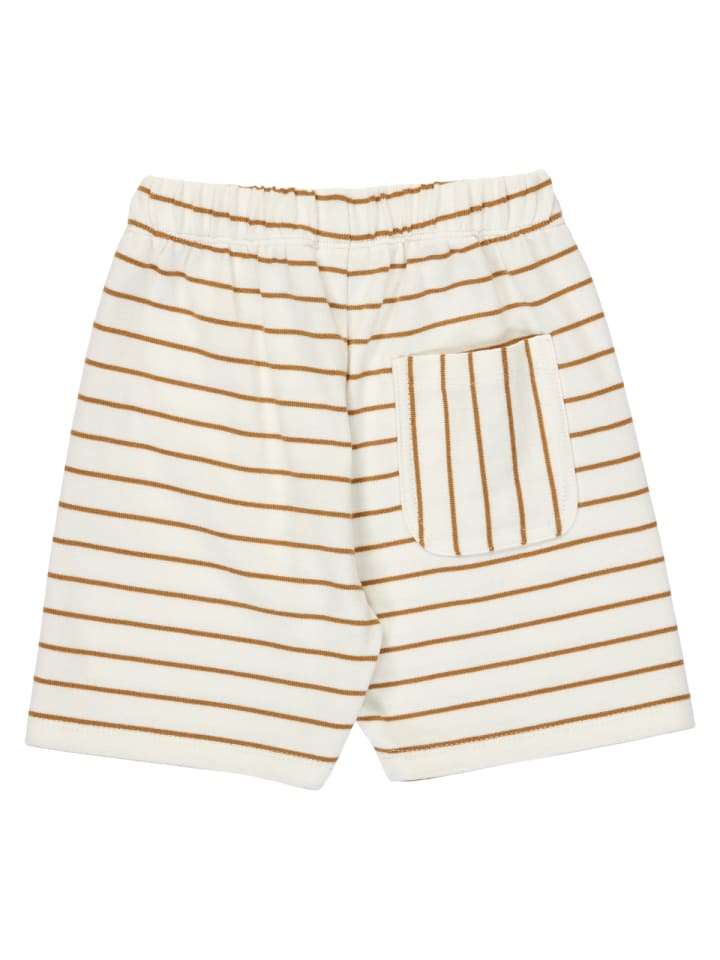 Детские шорты изготовлены из мягкого, удобного материала и обеспечивают отличную посадку. Они имеют напечатанные горизонтальные полосы и эластичный пояс. Изготовлены из 100% хлопкового интерлока, ткань тянется без использования эластана. Хлопковый интерлок обеспечивает ощущение комфорта, а также прочность и долговечность. Горизонтальные полосы придают шортам привлекательный дизайн. Эти шорты идеально подходят для повседневного использования и просты в уходе. Стандарт GOTS. Сертифицировано Ecocert Greenlife Lic. № 151714. Изделие сертифицировано GOTS Organic. В настоящее время это самый высокий стандарт для одежды. Все производственные процессы, такие как окрашивание, ткачество и шитье, осуществляются в соответствии со строжайшими экологическими нормами. Условия труда также строго контролируются на каждом этапе производства. 100% хлопок