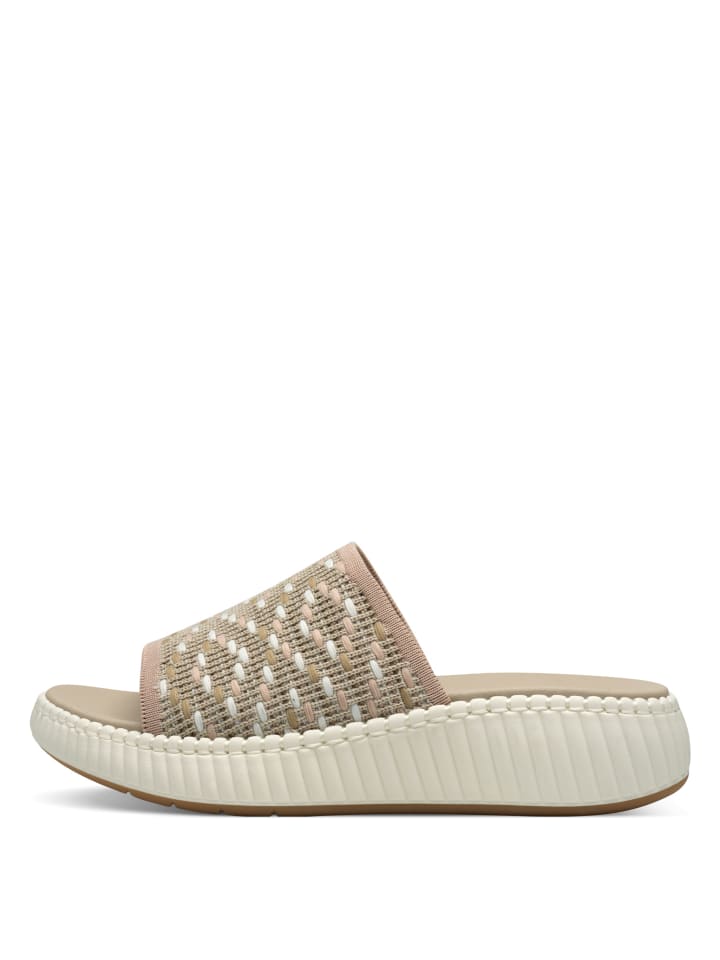 Эти модные женские мюли от JANA обеспечат вам комфорт и стильный вид в теплое время года благодаря удобной широкой посадке H. Верх выполнен из текстиля, не требующего особого ухода. Внутри вас порадует удобная текстильная подкладка и супермягкая замшевая стелька. Благодаря широкой посадке H эти модные летние мюли обеспечивают максимальный комфорт при ношении и ходьбе. Практичная резинка сбоку обеспечивает оптимальную посадку и поддержку. Абсолютно модная танкетка с имитацией рафии и светлая подошва с каблуком высотой около 3,5 см дополняют великолепный дизайн этих модных женских мюлей. Эти удобные женские мюли доступны в размерах 37, 38, 39, 40, 41 и 42. Наслаждайтесь летом с этими красивыми женскими мюлями от JANA!