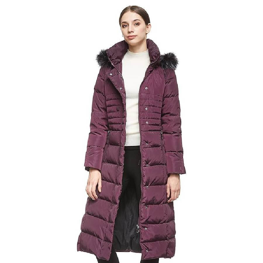 Длинный пуховик А-образного силуэта с двусторонней молнией. Съемный капюшон с отделкой из искусственного меха лучше согреет в непогоду. Эластичный дизайн спины он сохраняет стройность и тепло.