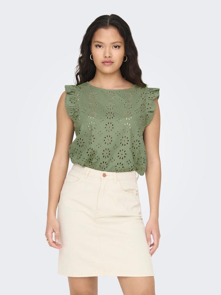 Broderie Anglaise характеризуется своими вырезами и вышивкой, которые создают красивый, похожий на кружево вид.